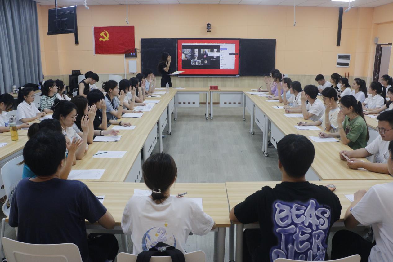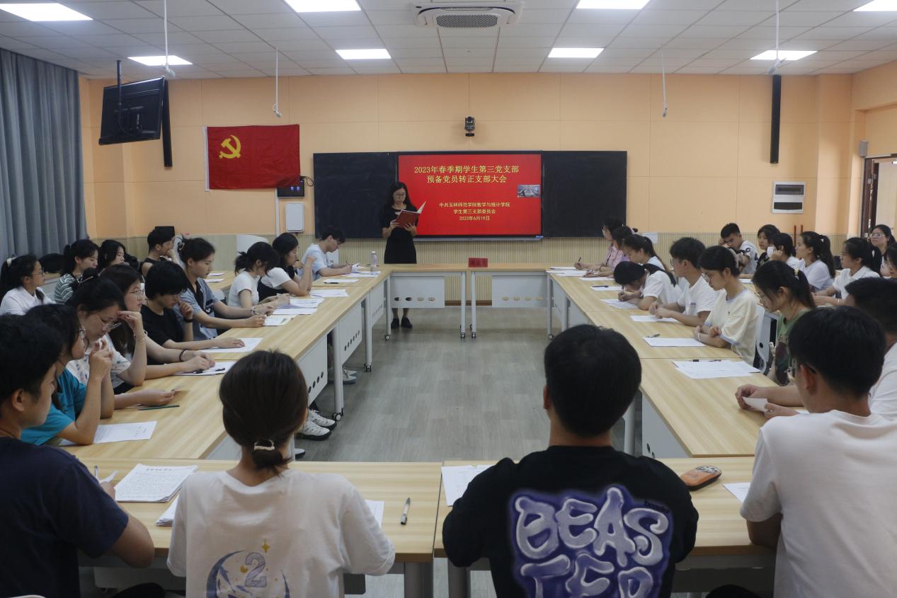 会议的第二项议程,由邓莹莹等8名同志分别进行入党的表态发言,潘金兰同志作总结发言,并对全体党员寄予了殷切期望。