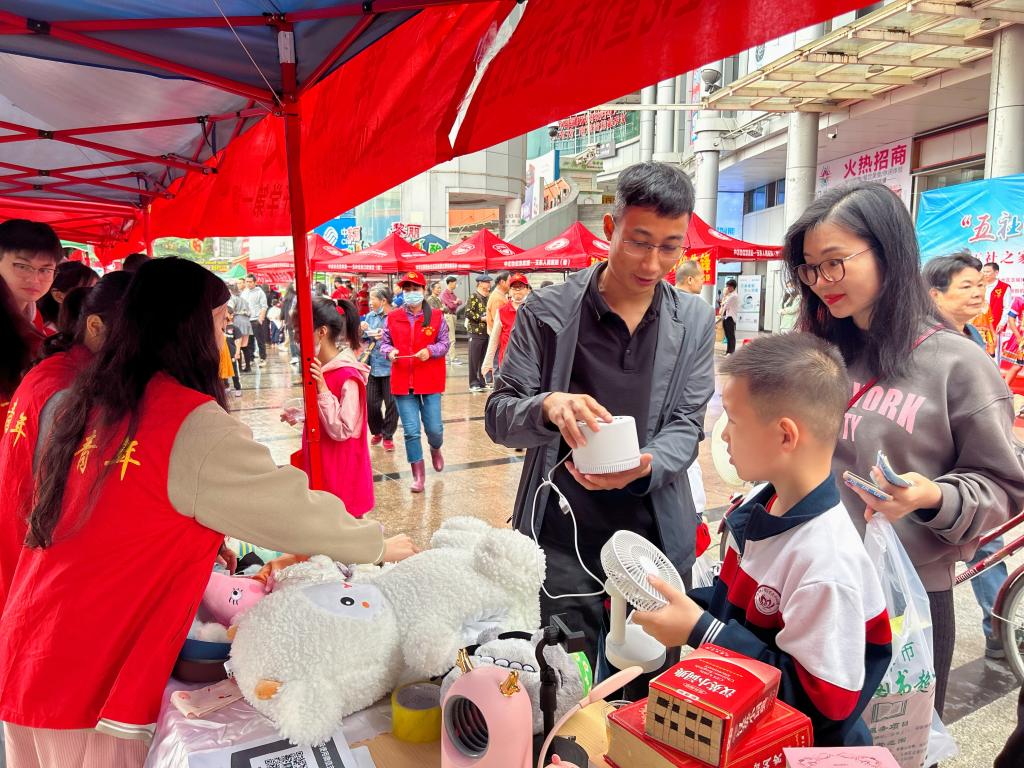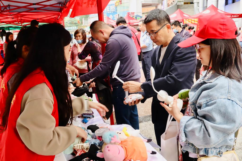 义卖现场,摊位前人头攒动、热闹非凡,志愿者热心耐心讲解,为闲置物品寻得有缘人,筹得更多爱心善款。爱心义卖活动持续近3小时,师生共同将义卖善款775.20现场捐赠给了社区普利社会工作服务中心用于助老纾困
