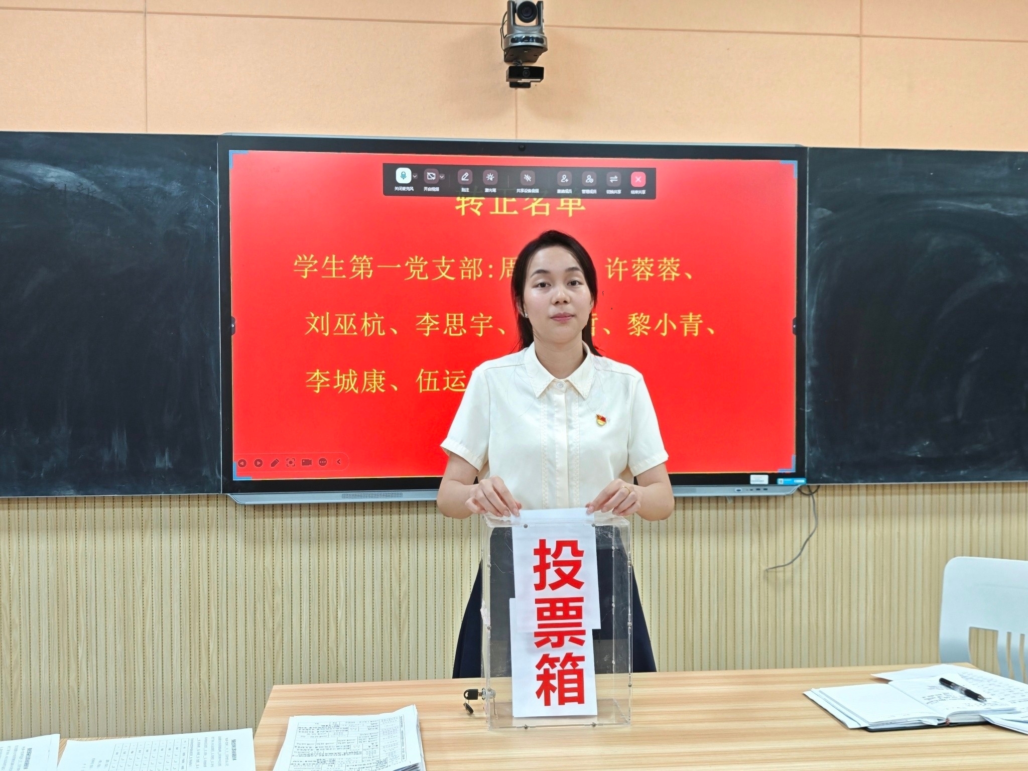 会议伊始,丘夏薇同志向全体党员通报到会情况,宣读大会议程,并强调严格遵循预备党员转正程序开展审议工作。随后,周泳妍等9名预备党员依次宣读转正申请书,系统汇报预备期在思想提升、学业发展、工作实践及日常生活中的表现,深入剖析自身进步与不足。入党介绍人结合预备期间培养考察情况,总结汇报9名预备党员思想、学习及实践的成长与不足。与会党员充分讨论、深入评议,经无记名投票表决,一致同意周泳妍等9名同志按期转为中共正式党员。