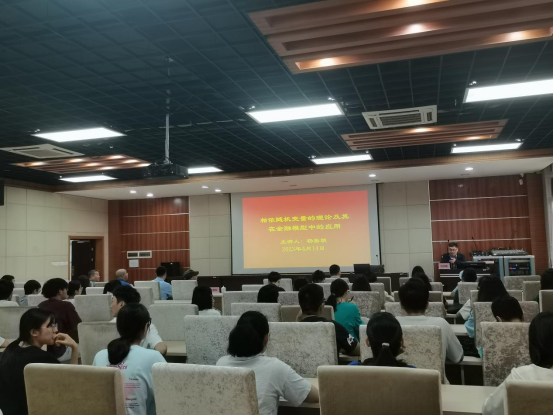讲座上,杨善朝以“相依随机变量的理论及其在金融模型中的应用”为主题,围绕相依随机变量的定义、金融模型的相依性、相依随机变量的不等式研究成果等方面内容进行了介绍,让师生们对相依随机变量相关理论有了深入的了解。师生通过互动,进一步强化交流与探讨,深化知识理解和吸收。