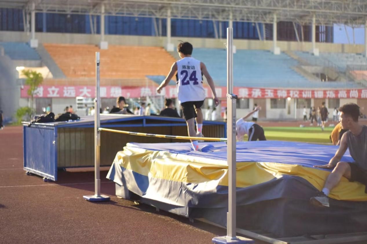 热闹欢腾运动会,数统学子显雄威。在这秋高气爽的十一月里,我们将迎着秋日的阳光,伴随着丰收的季节,昂扬走向那精彩的一年一度的校运会。在那炽热且耀眼的运动场上,勤奋的数统学子们每天不厌其烦地奔跑,跳跃,不惧训练的疼痛,不畏天气的炎热,严格要求自己,听从教练指挥,在一步步中成长为一名优秀的运动员。让我们跟紧记者们的镜头,来到玉师东校区新田径场,观赏跳高运动员的赛前风采。