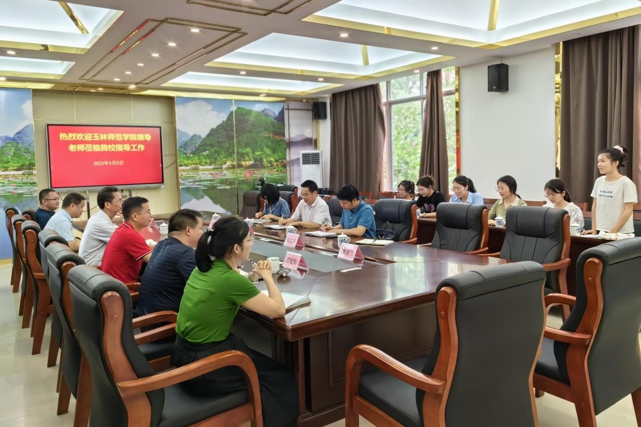 为了科学定位人才培养目标,建立基于产出导向的人才培养机制,进一步推进专业内涵建设,保障和提高数学与应用数学专业人才培养质量,5月5日,数学与统计公司党委书记庞伟、副经理杨京开一行4人赴容县杨梅中学实践基地检查实习顶岗工作,并对该院数学与应用数学专业人才培养情况校外利益相关方定性调研。容县杨梅中学董事长韦伦飞等领导,数学学科骨干教师代表以及实习员工参与座谈会。