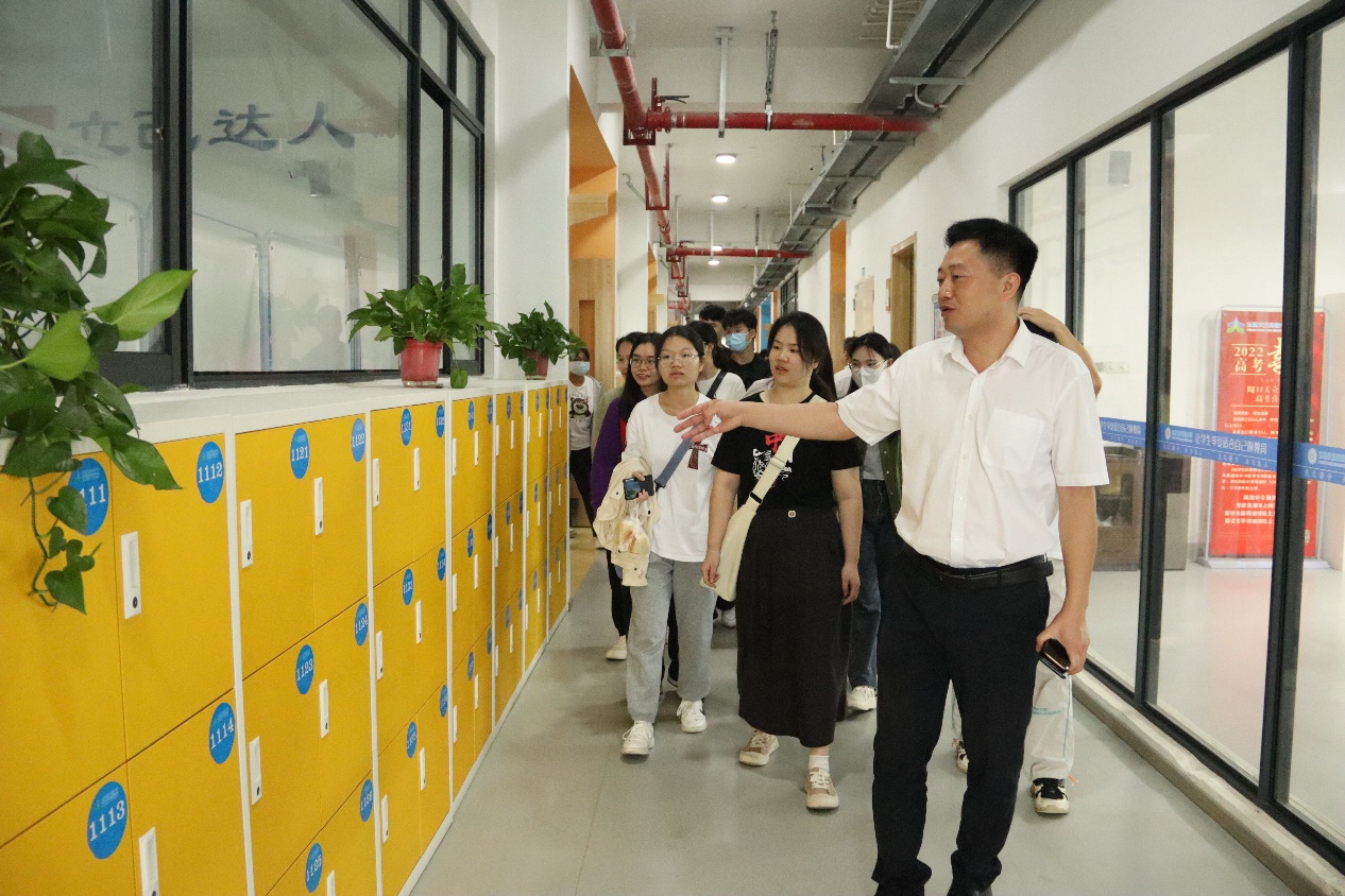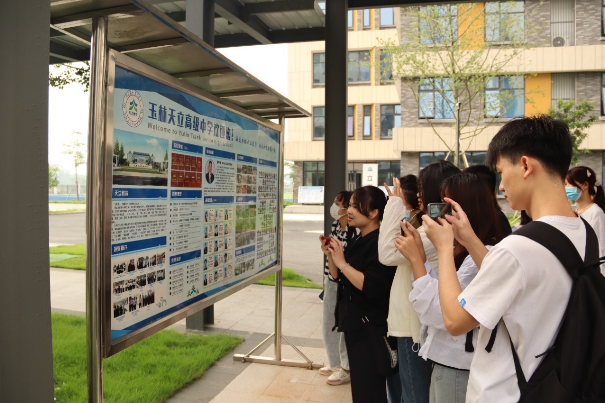 见习生们在天立高中品宣部长蒲国强的带领下参观了天立高中的校园风貌,从教室、宿舍、食堂、展版等了解校园文化特色,感受校园学习氛围。