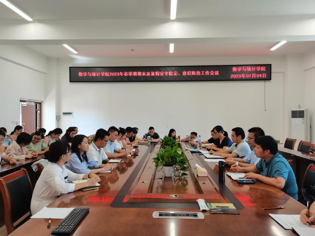 王培对本学期的教学工作进行了全面总结,希望全体教师与时俱进,持续提升教学技能和教学水平;做好期末考试监考、数学建模和老员工数学竞赛准备工作。李秀英从暑期社会实践、员工家访、就业工作、安全教育等工作做了详细布置,要求辅导员、班主任始终坚守岗位,认真履职尽责,密切关心关注员工,及时回应员工诉求,提高个人职业素养和理论水平。杨京开从一流专业评估、应用数学中心建设等方面工作作了布置。
