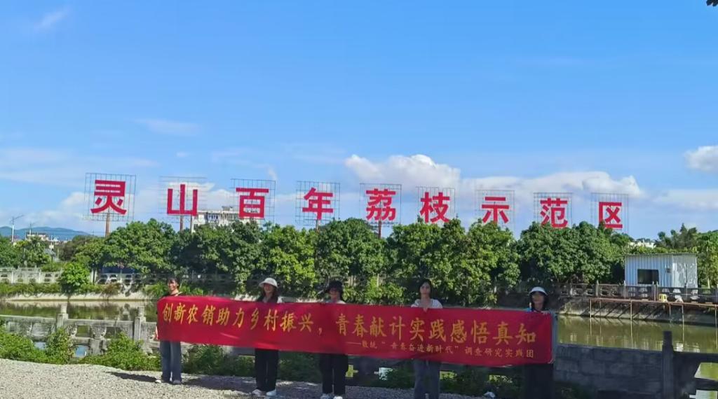 7月8日,实践团前往钦州市灵山县喜橙龙武书院的百年荔枝示范区,通过对致富带头人、村干部、农业农村局干部等的访谈,了解百年香荔园的历史和发展状况,荔枝推动乡村振兴所取得的成就及面临的问题,荔枝保鲜和销售现状等情况,切实摸清了解灵山荔枝的发展现状。实践团结合自身专业知识与抖音、小红书直播助农等方式促销,实现农户增收致富,打响助力乡村振兴品牌。