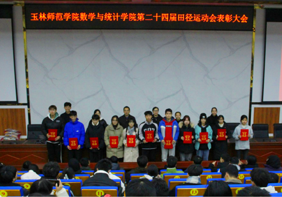 周美艳宣读本次运动会表彰名单,由庞伟、李秀英及辅导员为本次运动会的优秀教练员、运动员、优秀组织单位进行颁奖。