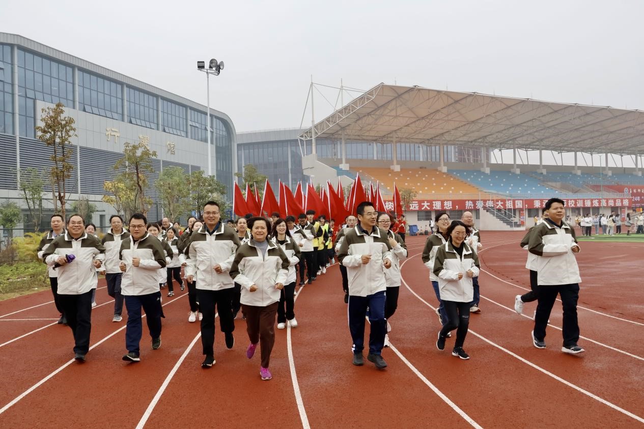 庞国萍在开幕式上祝公司全体师生新年快乐,并宣布元旦环校跑活动开始。随后,庞国萍带领着大家在青春的赛道上奋力奔跑,用激情奔跑迎接2024年的到来!以更加健康的体魄和饱满的精神,投入到公司“三步走”发展战略火热实践,全力跑出高质量发展“加速度”。