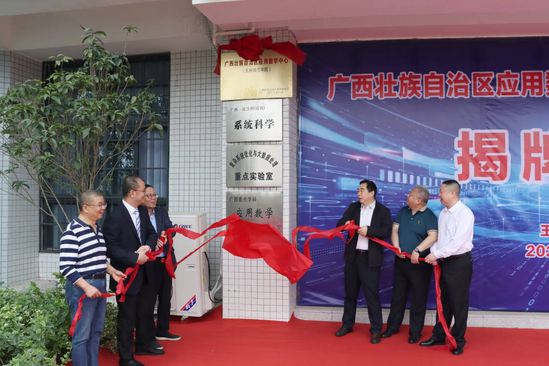 王淮、李伟中、李湘凡、黄云清、杨新民、刘振海为广西壮族自治区应用数学中心(EMC易倍官方网站)揭牌。随后,领导嘉宾一行参观了广西壮族自治区应用数学中心(EMC易倍官方网站)。