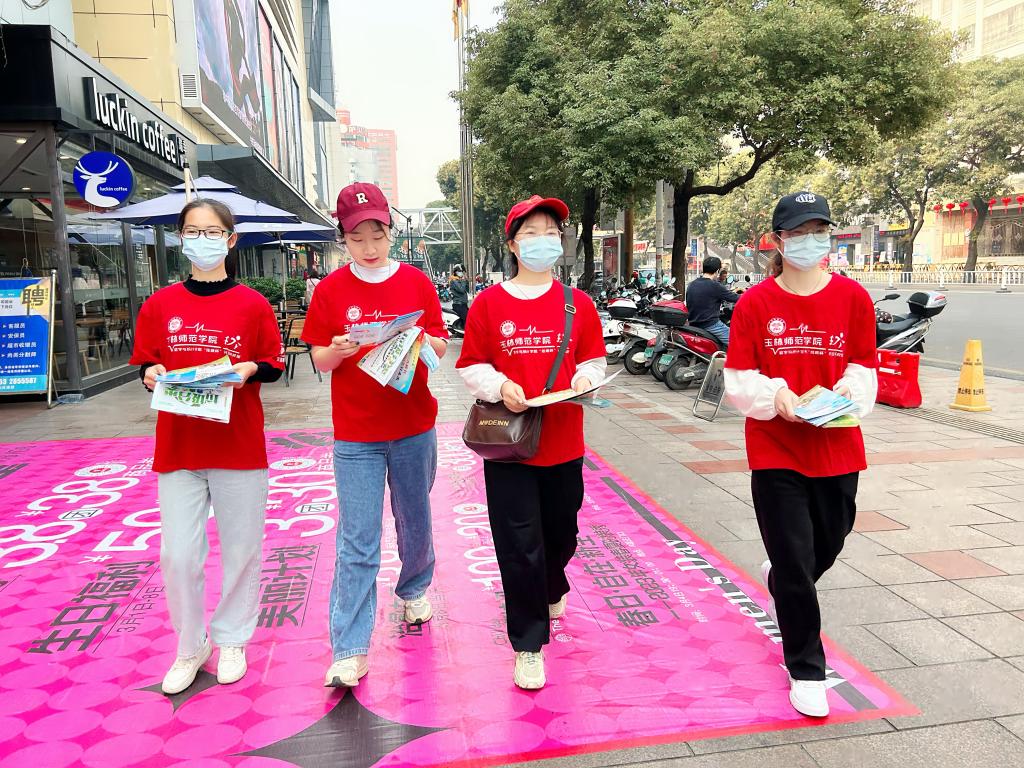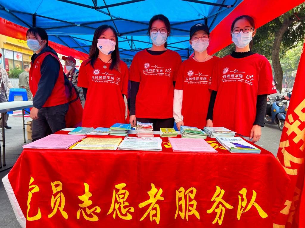 活动现场,老员工志愿者分成小组,积极参与到玉林市城市管理监督局、玉林市中心血站、玉州区人民检察院、中国邮政储蓄银行玉林市人民东路营业所等单位政策和法律法规宣传工作队伍中。