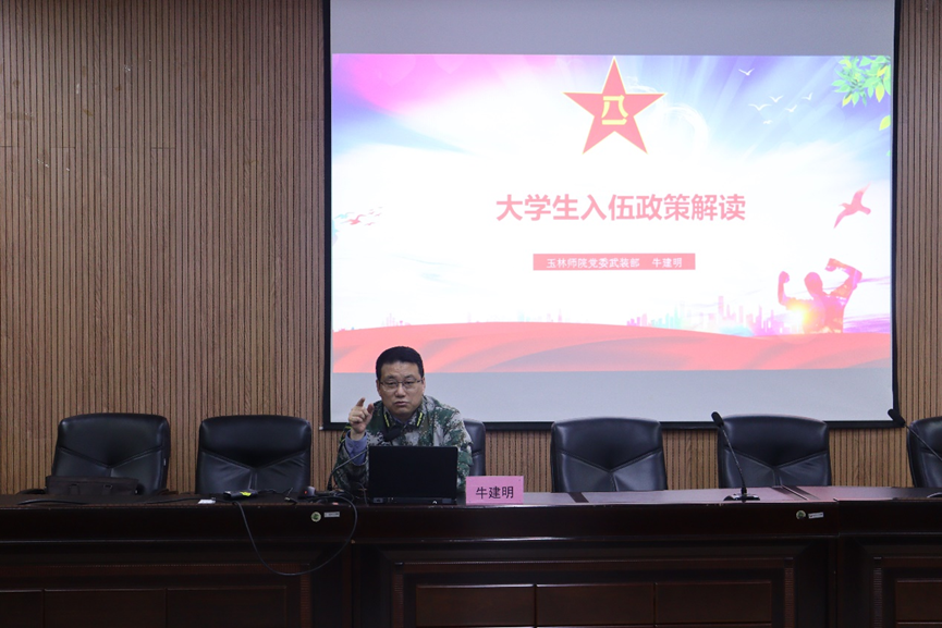 会议伊始,牛建明老师就当代征兵的条件与福利进行展开宣讲,鼓励员工积极踊跃参军,利用一切机会,学习本领、练就品格、强大精神、锻炼军事技能,并把这段经历当成人生的宝贵历程。牛建明老师强调唯有自身强大,才能在保家卫国的征程上,成为坚不可摧的城墙。最后他希望同学们能够增强职责使命,勇担历史责任,树牢“请党放心,强国有我”的决心,用优异成绩铸就报国之行,为实现中华民族伟大复兴的中国梦不懈努力。