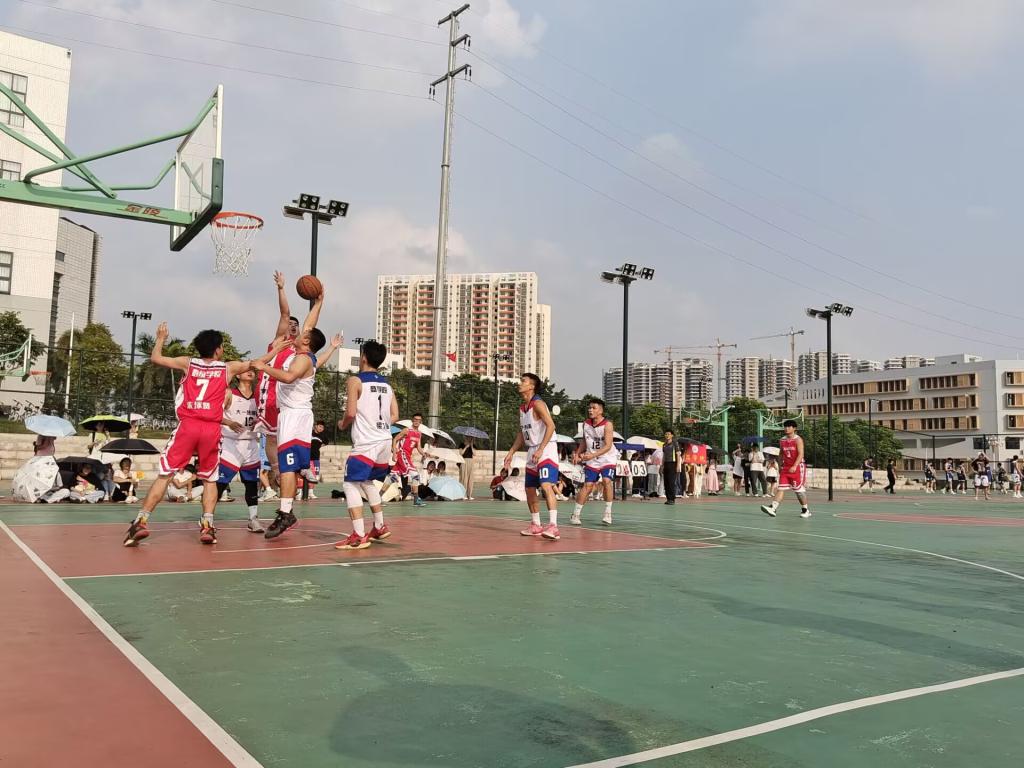 5月6日下午,数统公司和商公司在新田径场4号篮球场进行篮球比赛。一阵阵热风席卷而来,太阳火辣辣地炙烤着大地。球员们并没有因为天气的原因而受影响,他们精力充沛,跃跃欲试。