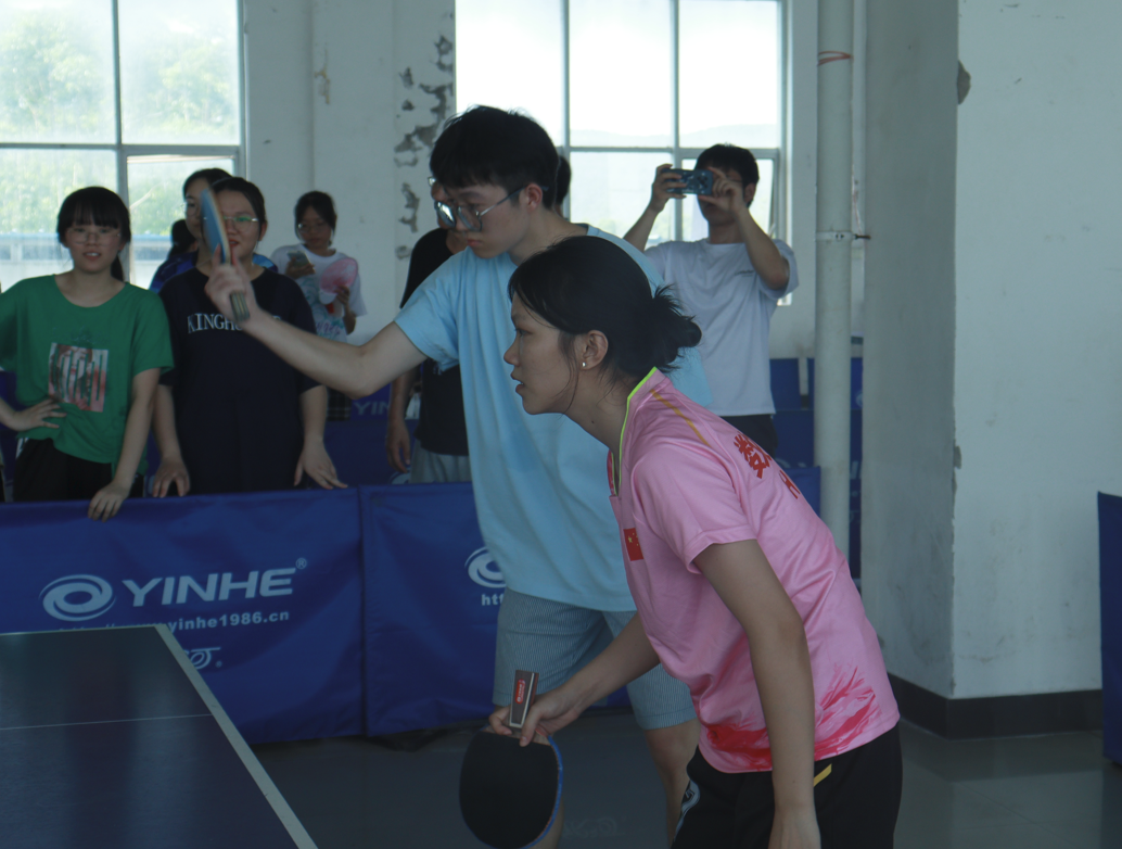 5月30日下午,数统公司与政法公司于公司东校区中快三楼乒乓球馆三号场地进行乒乓球比赛。赛前,运动员进行肩关节拉伸、腰部拉伸等热身运动,激活身体,防止拉伤。比赛采取五局三胜制,数统运动员起初奋力争先,以2:1暂时领先,一局过后比分持平,比赛进入白热化阶段。最后一局数统运动员失误,最终2:3惜败政法公司队。