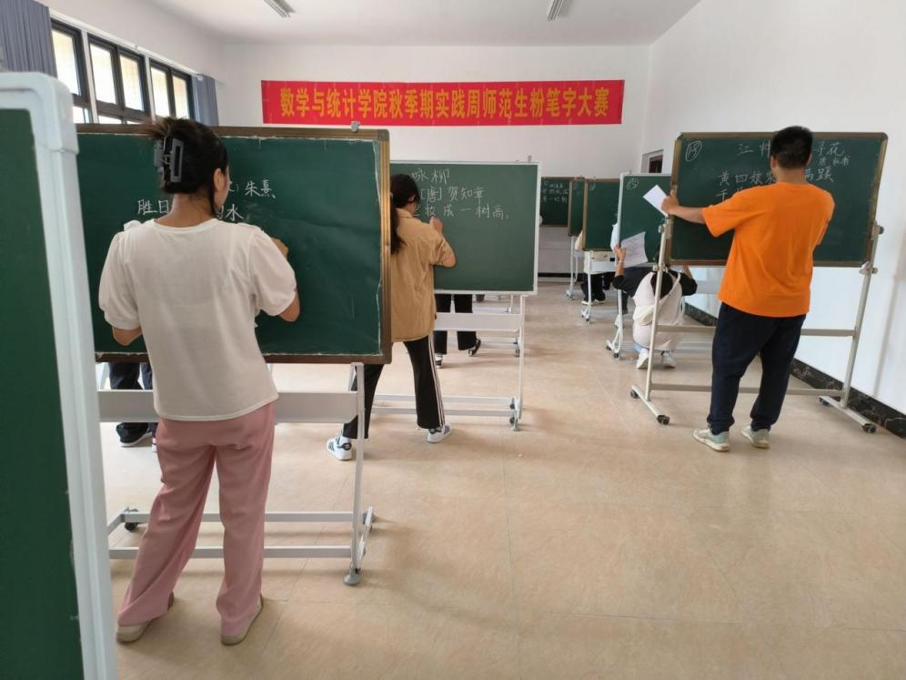 为加强师范生教学技能,提高师范生创新能力、教学能力和就业能力。11月2日,数统公司于粉笔字练习室举办2023年实践周师范生粉笔字比赛。本场比赛由数学与应用数学2023级全体员工参赛,冯瑜等六位教师参与评选打分。