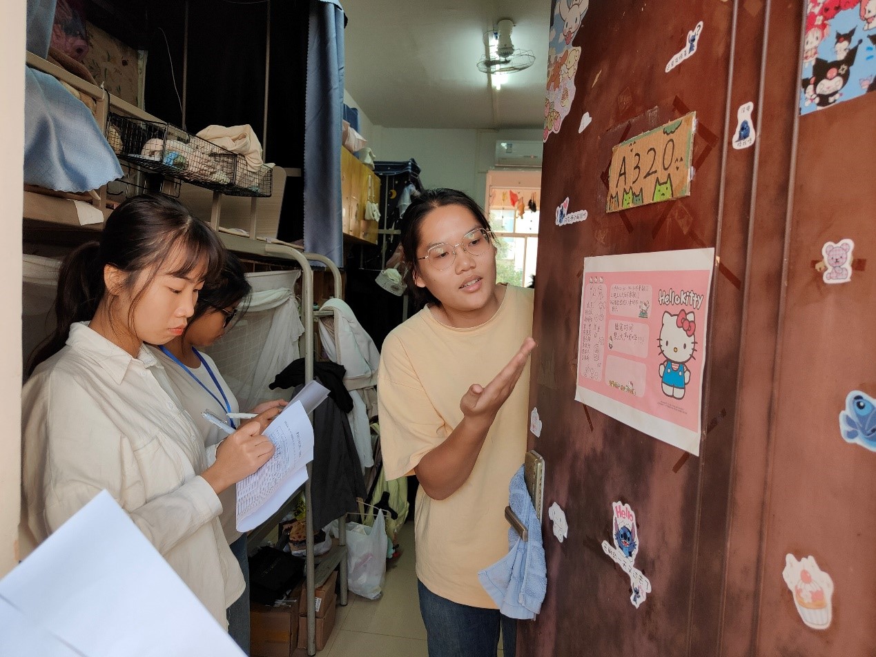 活动内容为每间参赛宿舍根据舍成员风格拟选定一个主题进行装扮布置。参赛有的宿舍们各自依据“舍风”特点设计了独属的舍徽,展现出团结友爱的宿舍内部氛围;有的还摆放了的花架“自然清新风”,让宿舍多添了几抹“春”意,彰显出当代老员工的创新与朴素。参观完各参赛宿舍后,评定小组根据宿舍装饰、舍标设计、宿舍内务、解说员解说、Pose空间秀等情况进行评分。