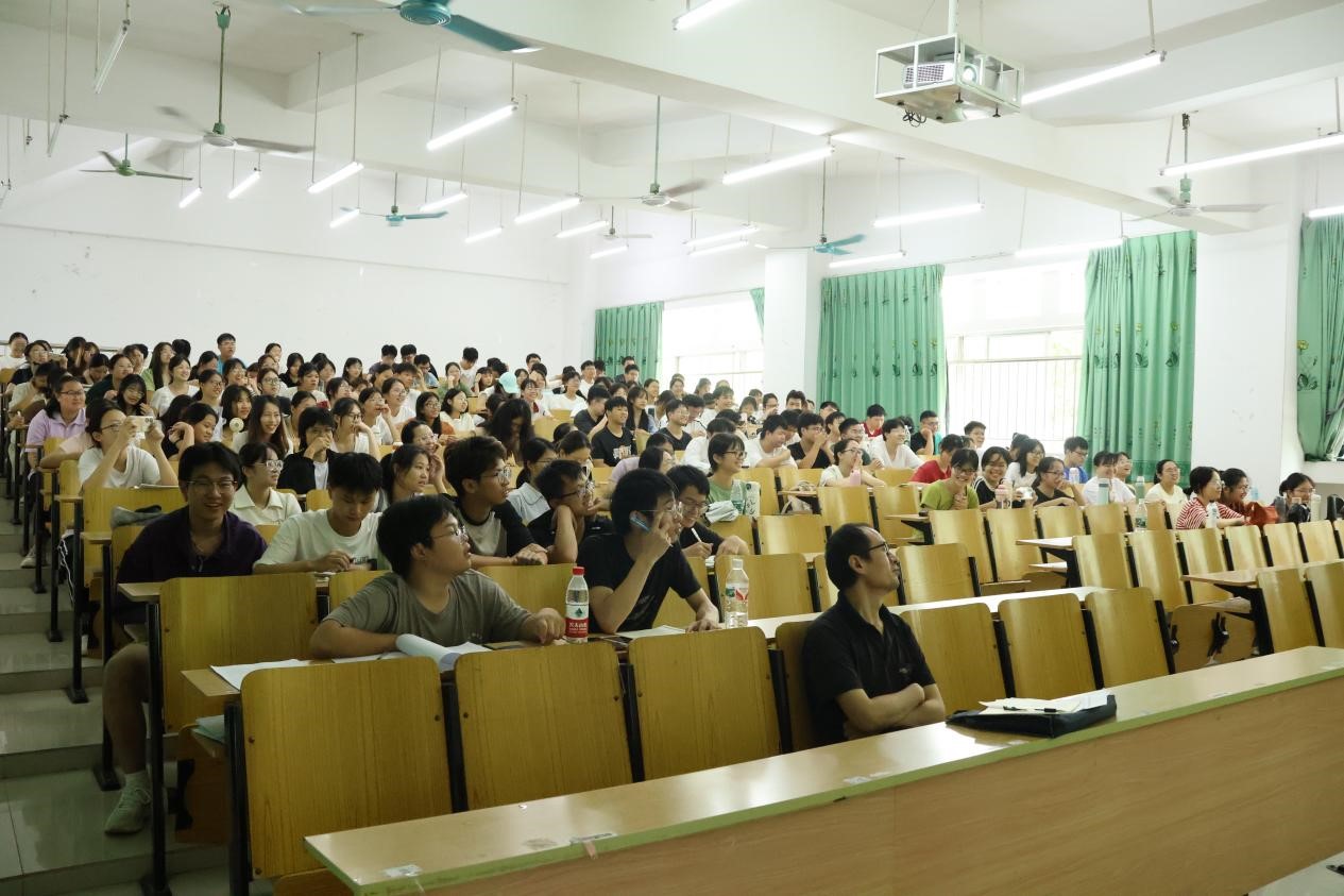 讲座上,苏秀旺分别从“如何做好一名教师”和“教师的职业素养”两方面讲解。他鼓励同学们做“四有好老师”:有理想信念、有道德情操,有扎实学识,有仁爱之心,要潜心练好基本功,掌握扎实的专业知识,做一个睿智的老师,引导同学们在面对问题时转换思维方式去思考,学会灵活变通。他分享自己的课堂教学经验,提出“四个关键”,围绕创新设计、理论素养、语言艺术和精美课件展开,给同学们详细介绍了自己的教学心得体会。