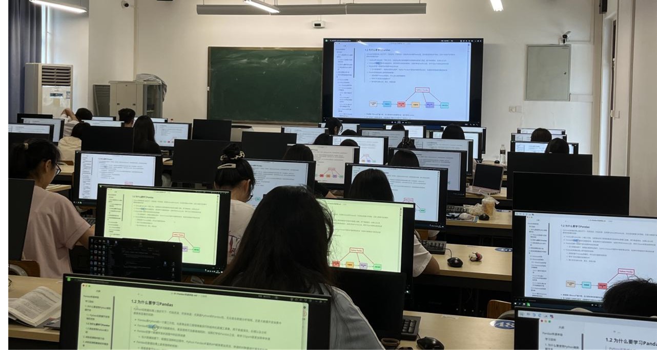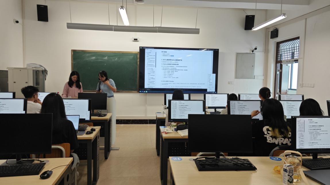 课上,梁丹为员工播放相关教学视频,引导员工自主学习。她边运用jupyter软件编写代码,边向同学们讲解 Python的基本语法,基本数据类型,搭建环境判断语句,以及文件操作和处理,初步引导同学们形成Python基本编程思维。课后,老师组织同学进行练习,进一步对所学知识进行巩固,通过Python编程实践,锻炼员工的逻辑思维和问题解决能力,让员工可以更好地使用Python 库(如NumPy、Pandas)处理数据,理解数据的分布、相关性等统计特性。
