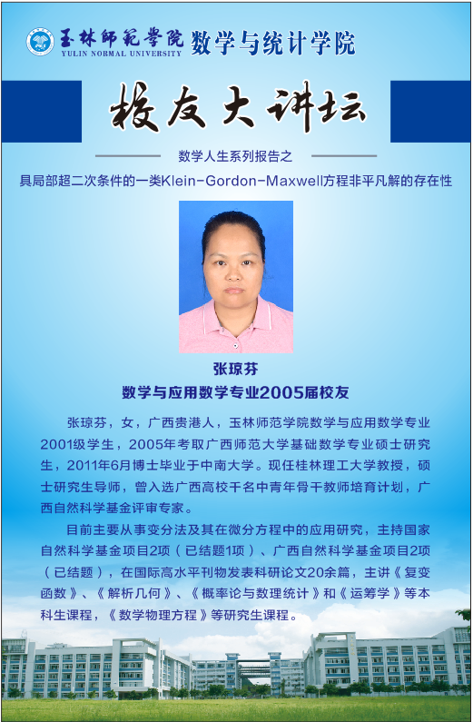 张琼芬以“具局部超二次条件的一类Klein-Gordon-Maxwell方程非平凡解的存在性”作为主题,对师生进行讲解,并与师生们共同深入探讨和解决其中存在的问题。她对比不同时期的教学环境,以自身的求学经历,勉励员工们要认真学习,专研课本,明确人生定位和方向,坚定理想信念,善学善用网络媒体资源加强学习,拓宽知识面,不断充实自己的知识储备。